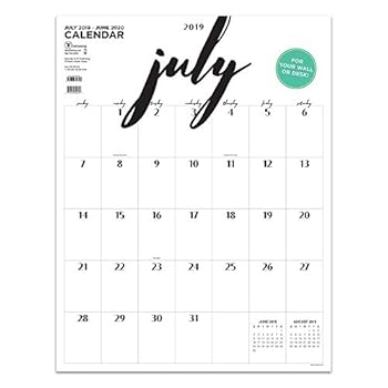 Hand Lettered Script Large Desk Wall 2020 Calendar: July 2019 - June 2020 (Academic Year Desktop Calendar)
